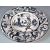 An antique 19th Century Italian Manganese Majolica hand painted blue and white wall hanging charger plate depicting a village scene with a young boy to the foreground. Decorative floral border. Marked to verso Monfort S.A. Measures approx; 30cm diameter.