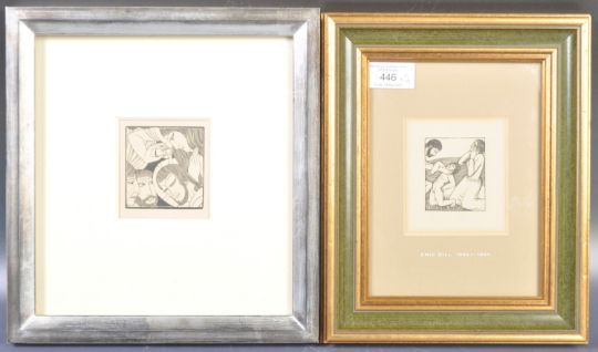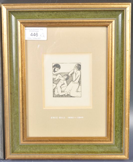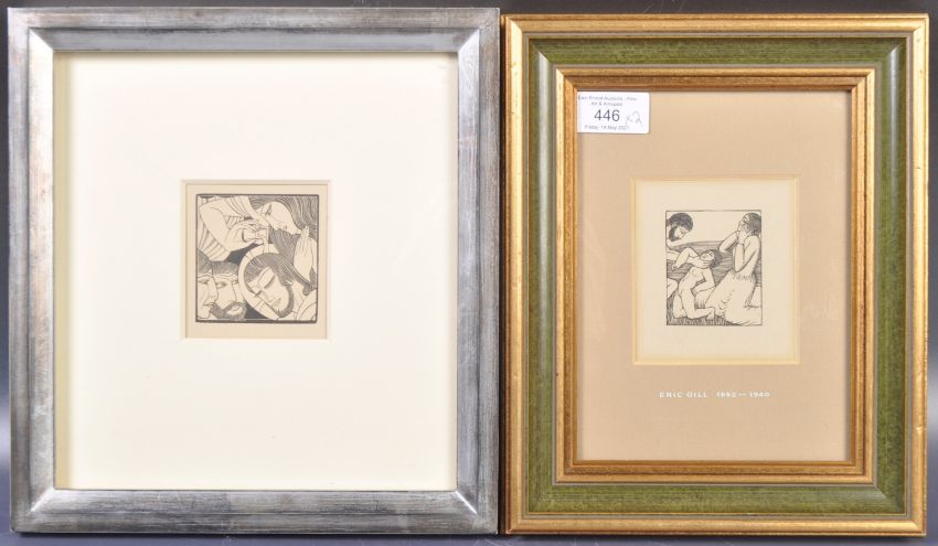 Eric Gill (1882-1940) - A pair of early 20th Century woodcut engravings / prints comprising The Slaughter Of The Innocents 1914 & Mary Magdalene. Both in frames. Measures approx; 27cm x 22cm.