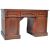 An antique late 19th / early 20th Century Victorian / Edwardian mahogany twin pedestal writing table desk in the manner of Gillows having a cigarette brown leather top with architectural front with central drawer flanked by a smaller drawer to each side The fascias having turned pull handles and framed borders. The pedestals of cupboard / cabinet form with hinged door opening to reveal a fitted shelf interior. Measures approx; 75cm x 123cm x 60cm.