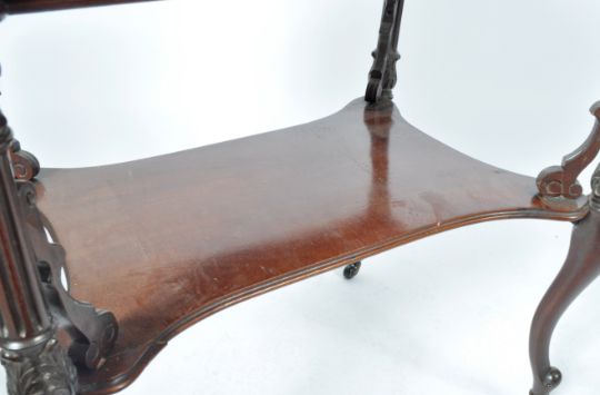 An antique 19th Century Continental mahogany ladies bonheur de jour writing table desk having a shaped gallery back with stepped square panel fall front with leather writing sciver, fully appointed interio with penrest, inkwell and more. Single drawer to the frieze with rounded edges, ornate brass handles and 'C' scroll detailing. All raised on sabre legs with cylindrical carved columns united by lower tier stretcher and brown ceramic handles.. Measures approx; 93cm x 70cm x 51cm.