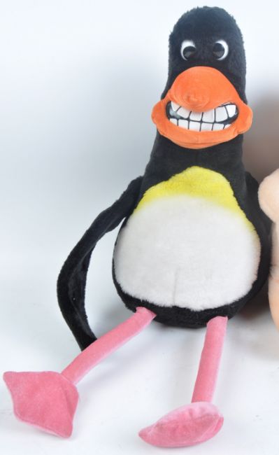 Aardman Animations - Creature Comforts - A collection of three original Aardman licensed animal soft toy teddy bears comprising Andrew The Penguin, Martin T Pig & Frank The Tortoise. All in good clean condition with makers labels. Largest measures approx.; 56cm tall.