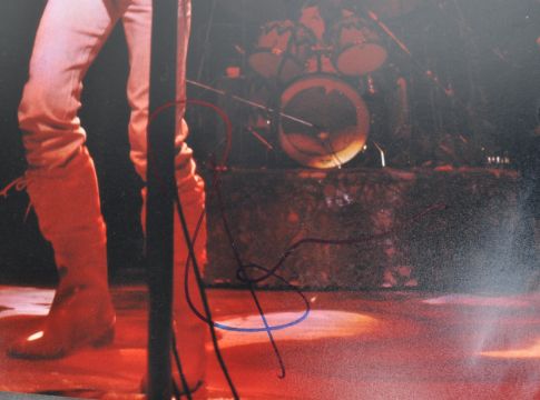 Ronnie Wood - English Singer Songwriter & Guitarist - The Rolling Stones - autographed 11x14" colour photograph of Wood on stage. Signed by the musician in blue ink to a lower area of the image. Obtained in person by an AFTAL registered dealer. With certificate.