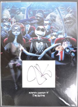 The Nightmare Before Christmas (1993) - Tim Burton - 16x12" autograph display, featuring an autograph in black ink professionally mounted in a pictorial mount featuring characters from the film. Great display piece. Obtained in person by an AFTAL registered dealer, with certificate.