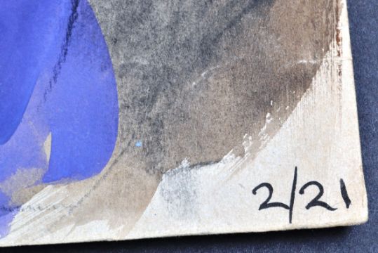 ARTISTS RE-SALE RIGHT. Buyers of the re-sold art of living artists will be charged the royalty where applicable. Currently this is 4% on any item sold at 1000 Euros or over, diminishing about 50,000 Euros. VAT is not applicable. Further details can be obtained from our office.