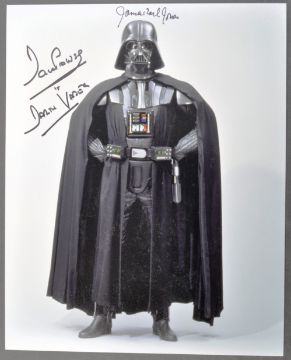 Star Wars - Darth Vader - Dave Prowse (1935-2020) and James Earl Jones - a scarce dual autographed colour 8x10" photograph of Darth Vader. Signed by both in black ink, Prowse adding character name. Both obtained in person, and supplied with a certificate from an AFTAL registered dealer.