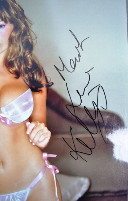 Kelly Brook - English Model & Personality - autographed large 16x12" glamour photograph of the model, signed neatly in black ink to a light portion of the image. Obtained in person by an AFTAL registered dealer. With certificate.