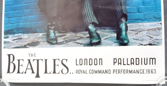 The Beatles - London Palladium - A lithograph printed poster by Louis F. Dow Co. U.S.A for The Beatles Royal Command Performance 1963 at the London Palladium. 1964 NEMS Enterprises LTD printed to the bottom right. The poster depicting all four members of the band with litho printed signatures. Rolled. Measures approx 72cm x 53cm.