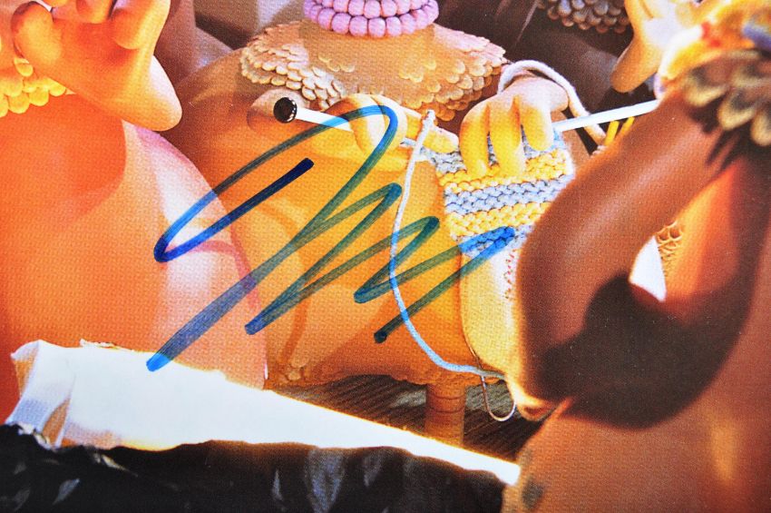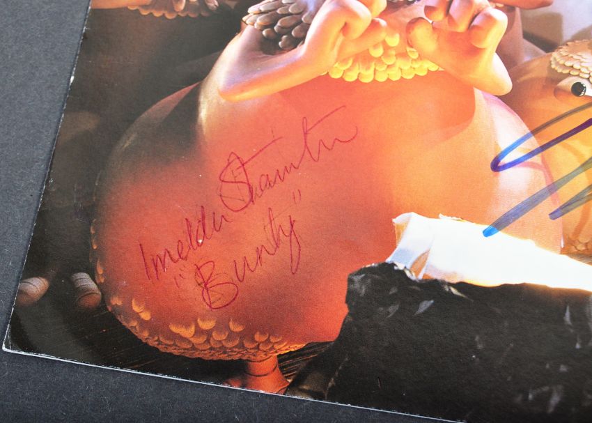 Aardman Animations - Chicken Run (2000) - an original dual signed autographed 9x10" promotional magazine photograph from the movie, signed by stars Jane Horrocks (Babs) and Imelda Staunton (Bunty). Signed in black and red ink respectively, to lighter portions of the image. Obtained in person.