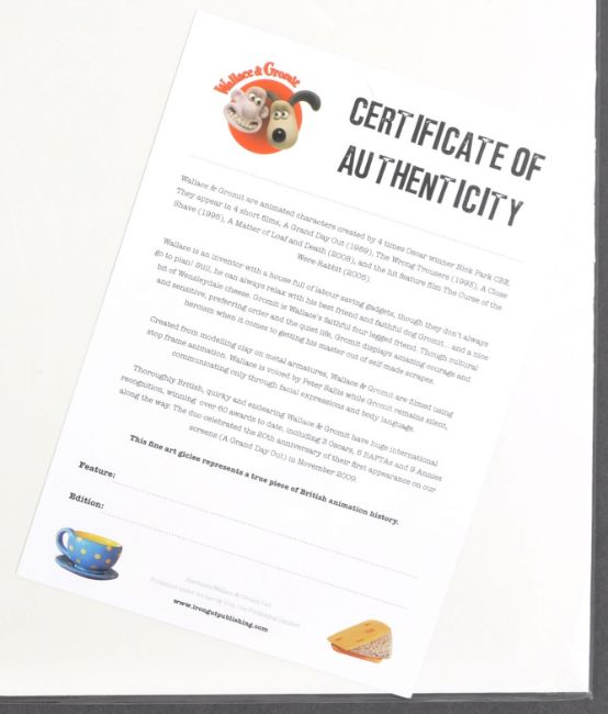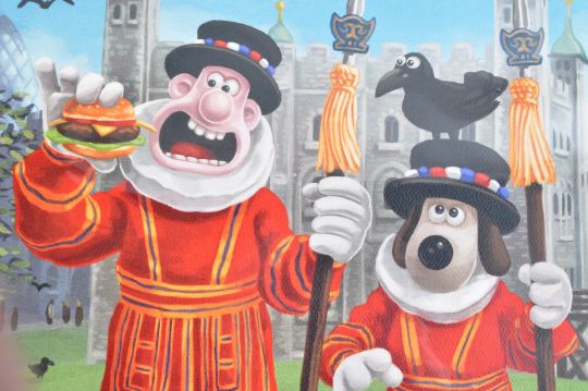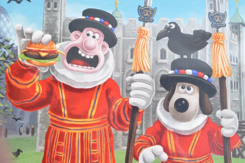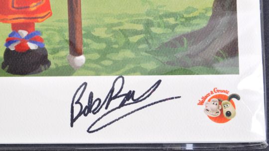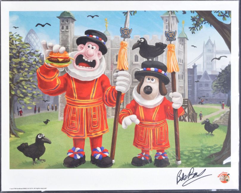 Aardman Animations - Bob Baker (writer) - scarce Visit England made promotional 16x12" officially produced (but never released) artwork print depicting Wallace and Gromit outside the Tower of London. Signed by Baker in black ink to the margin. Print undisplayed, still housed in its original packaging. Rare print, never made available for the public.