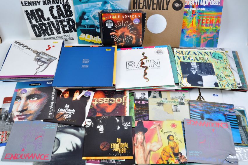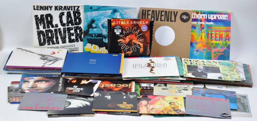 A mixed collection of 80+ 10" vinyl singles / EPs and 45 7" singles of varying artists to include Pele Fair Blows The Wind For France, Suzanne Vega Luka, Kinky Machine Shockaholic, Molly Half Head Taste Of You, Soul Asylum Black Gold, Jellyfish I Wanna Stay Home, Troy Tate Lifeline, The High More.. Madness, Lenny Kravitz Mr. Cab Driver and Let Love Rule, Top Box, The Diggers Peace Of Mind, Joe 90, The Lemon Trees / the way I feel, Jocata Change Me and many more.