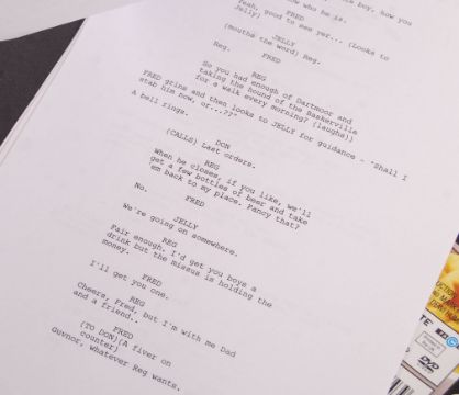 Only Fools & Horses - an original rehearsal script from the spin-off / prequel series ' Rock And Chips '. The script being that of James Buckley, who played Derek Trotter in the series - named ' James ' to the top. Autographed to the front by Phil Daniels ( Grandad ). A5 original script. Along with a DVD cover of the series, also autographed by Daniels. Obtained in person by the vendor. Rare.