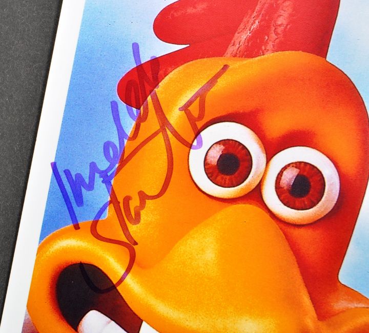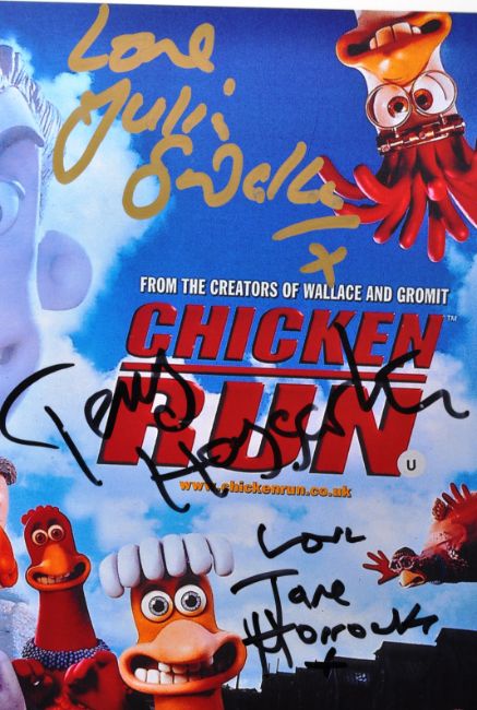 Aardman Animations - Chicken Run (2000) - cast autographed 8x10" colour photograph from the movie, signed by: Julia Sawalha, Tony Haygarth, Imedla Staunton and Jane Horrocks. All signed to light areas of the photo. With certificate of authenticity from an AFTAL registered dealer.