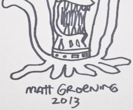 The Simpsons - Matt Groening - an original hand drawn sketch artwork of Kang (from Kang & Kodos). Drawn in black ink and autographed underneath by Groening, dated 2013. Obtained in person by the vendor. Total size approx; 19cm x 14cm.