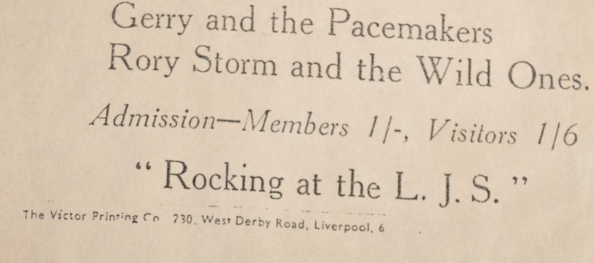 The Beatles - Swinging Lunch Time Rock Sessions 1961 - an incredibly rare original leaflet advertising an event ' Next Wednesday Afternoon, March 15th 12-5 Special - Starring - The Beatles, Gerry & The Pacemakers, Rory Storm and the Wild Ones '. Printed on off-white paper, with black text by The Victor Printing Co, Liverpool. Folded, but generally displays well for its age. A rare survivor.  18x13cm.