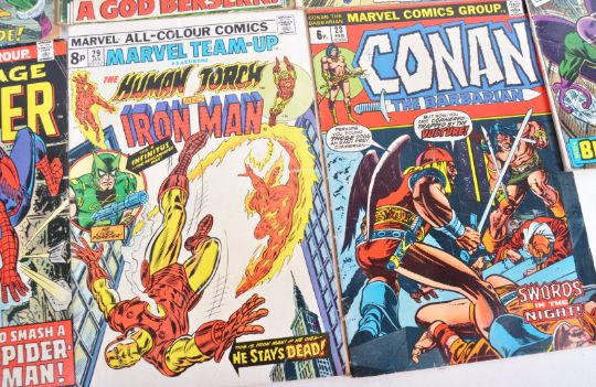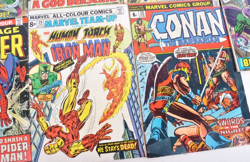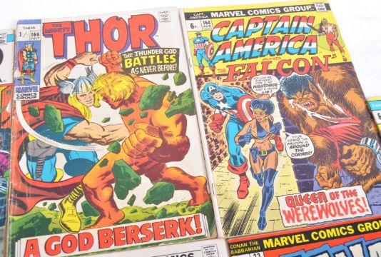 Comic Books - an assorted collection of vintage 1970s Marvel comics, comprising: The Mighty Thor #213, The Mighty Thor #166 (Second Appearance HIM / Warlock), Captain America And The Falcon #164, Daredevil #108, The Savage Sub-Mariner #69, The Human Torch and Iron Man #29, and Conan The Barbarian #23. Various conditions, but all generally fair to good and complete with covers.