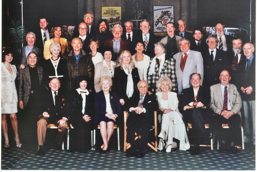 From the collection of Valerie Leon - a large 16x12 colour photograph of approximately x32 cast members from the Carry On films mounted on white card, along with a personal thank-you card and invitation from the film producer Peter Rogers. Actors and actresses to include Valerie Leon, Barbara Windsor, June Whitfield, Angela Grant, Jack Douglas, Leslie Phillips and others. Great photo.