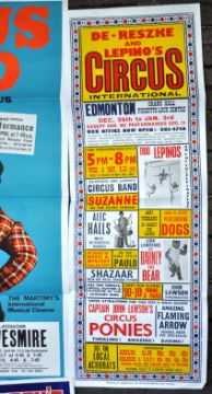 Circus Posters - 1970s - a collection of x5 original vintage c1970s Circus promotional advertising posters. The first being a Ringling Bros ' Marriage of Michu & Juliana ' large poster (95cm x 58cm), x2 Davies & Gandey's Circus postersby W.E. Berry of Bradford, a vintage De-Reszke & Lupino's Circus poster by A. Taylor of South Yorkshire (74cm x 26cm), and a Circus Reco pictorial poster. All folded, various conditions but all generally VG+ to NM.