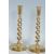 A pair of early 20th century matching bell metal door handles with rectangular back plates together with a pair of brass open barley twist candlesticks and a pair of brass letterboxes which both have studded decoration to the edges. Candlesticks measures 30cm tall.