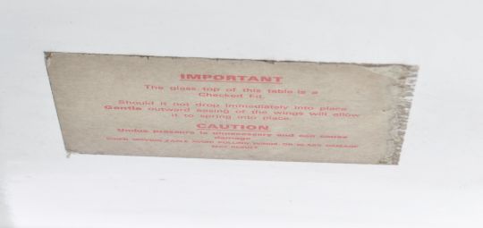 A good retro vintage 20th Century high end British Design two tier circular coffee table / centre occasional table having a thick smokey glass top supported by plastic projection moulded shaped form sides. White secord tier below with all being raised on cylindrical black base having castors. Measures approx 46cm x 90cm.