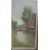 An antique early 20th century oil on canvas painting of a riverside scene with a man in a boat. Signed B Thomas 1908. Measures 70cm x 40cm.
