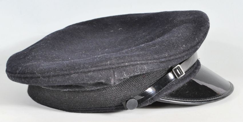 An original 20th century Fire Brigade hat / cap of usual form with chrome British - Fire - Association badge to the front.