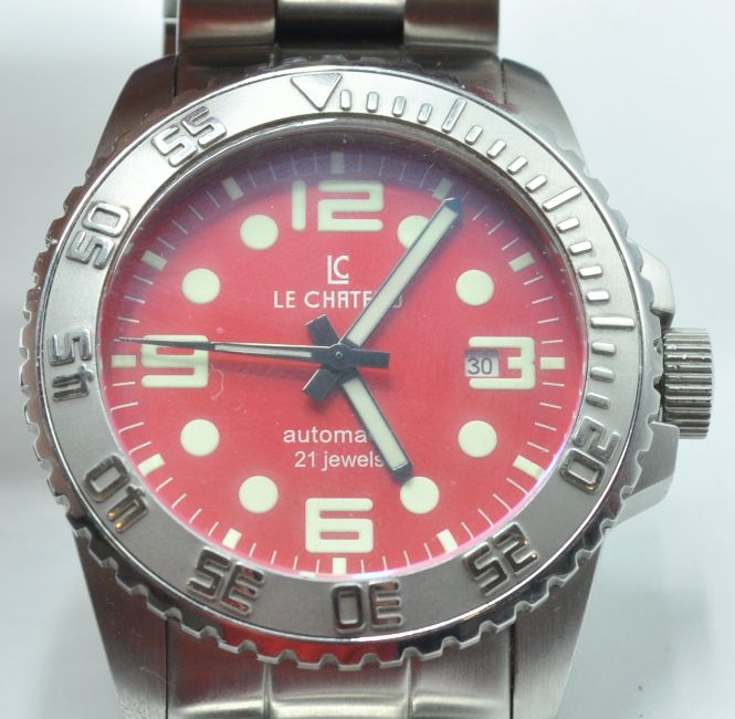 A group of four gentleman's wrist watches to include a Amadeus chronograph quartz watch, Le Chateau stainless steel watch, Gianni Sabatini chronograph watch and a Sekonda watch with a leather strap.