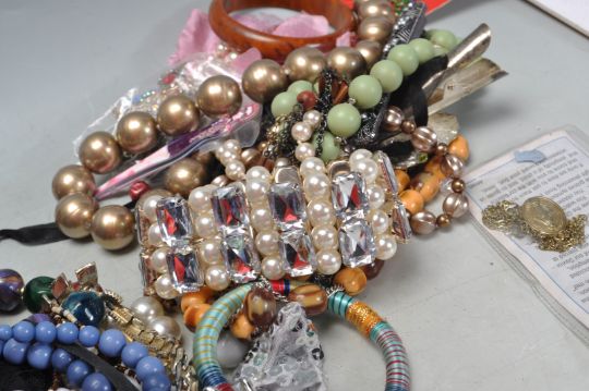 A collection of vintage costume jewellery to include a wide selection of beaded necklaces, bangle bracelets, brooches, earrings etc. Includes a wide variety of styles and ages.