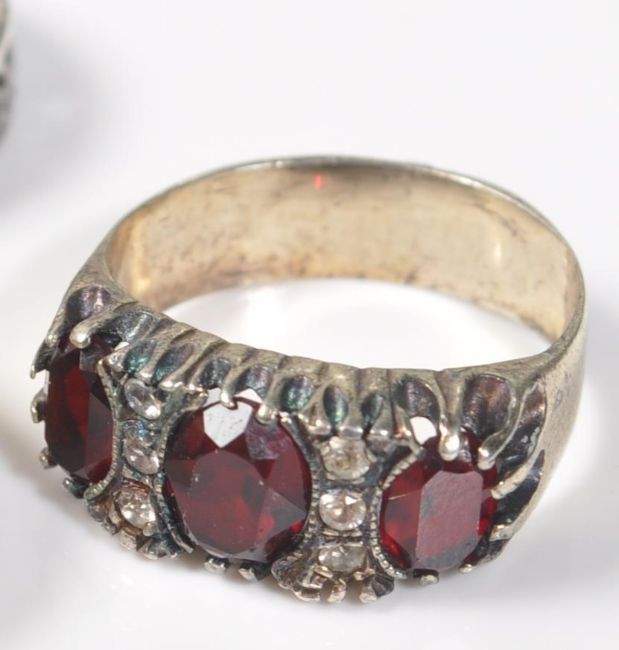 A collection of eight vintage 20th century silver 925 rings / dress rings of various sizes and designs. All stamped 925. Weight: 46.35