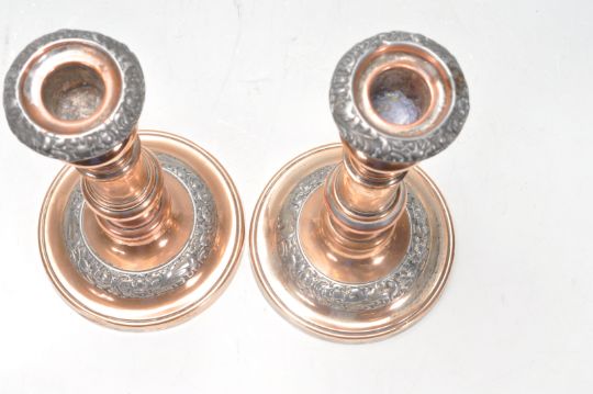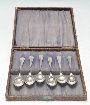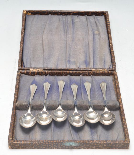 A set of six early 20th century silver teaspoons. The teaspoons of a plain form hallmarked Birmingham dated 1930 by J B Chatterley & Sons Ltd complete with original presentation box. Weight: 73.4g. Along with twelve silver plated name card holder in shape of a duck in original presentation box and a pair of silver plated and cooper candlesticks.