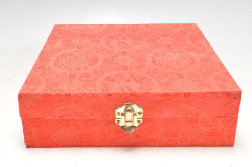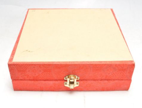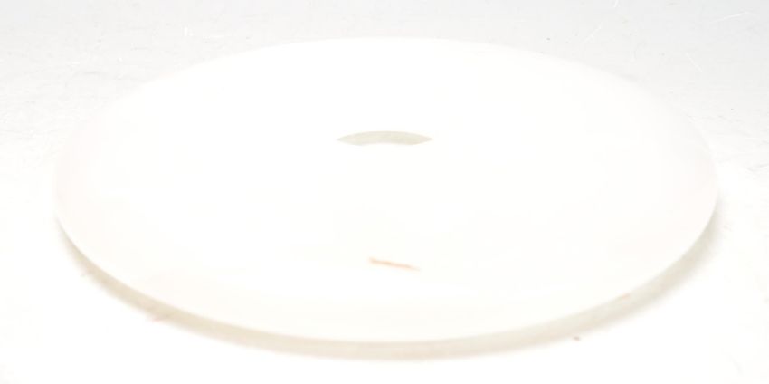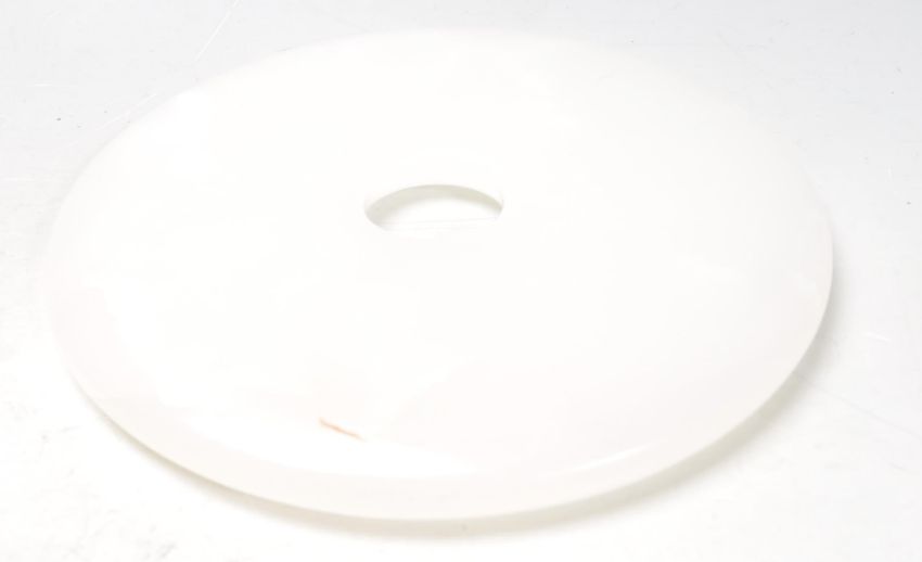 A 20th century antique style Chinese oriental stone disc / white jade colour disc of a large circular form with circular cutout to the centre compete with original red presentation box. measures: 18cm diameter