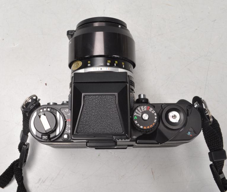 A vintage retro 20th century Nikon F3 35mm camera  / photography camera having serial number 1808900 complete with Nikon dw-3 waist level view finder, a Nikon Nikkor 85mm 1:2 No. 326749 lenses, Nikon Nikkor 35mm 1:2 No. 293983 and a Nikon DE-3 high eye point view finder for F3 HP Camera and brown leather box and receipts. NIKON F3 35MM - NIKON 85MM 1:2 - NIKON 35MM 1:2 - NIKON DE-3 - NIKON DW-3