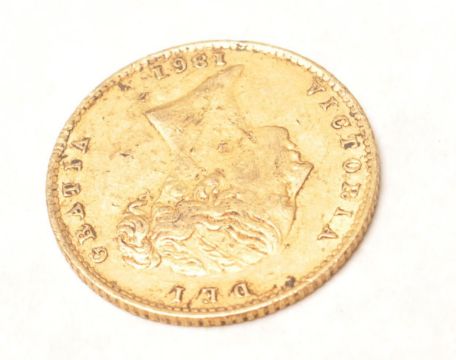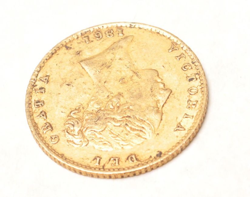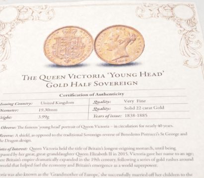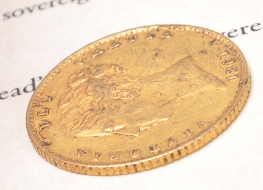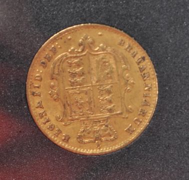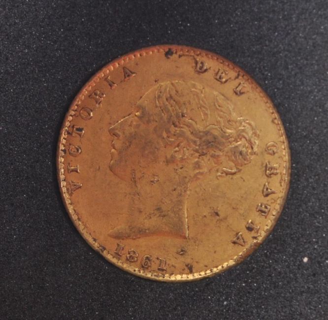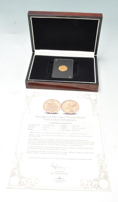 An 1861 Queen Victoria 'Young Head' solid 22 carat gold half sovereign coin. Diameter 19.3mm. Weight 3.99g. Comes with presentation box and certificate.