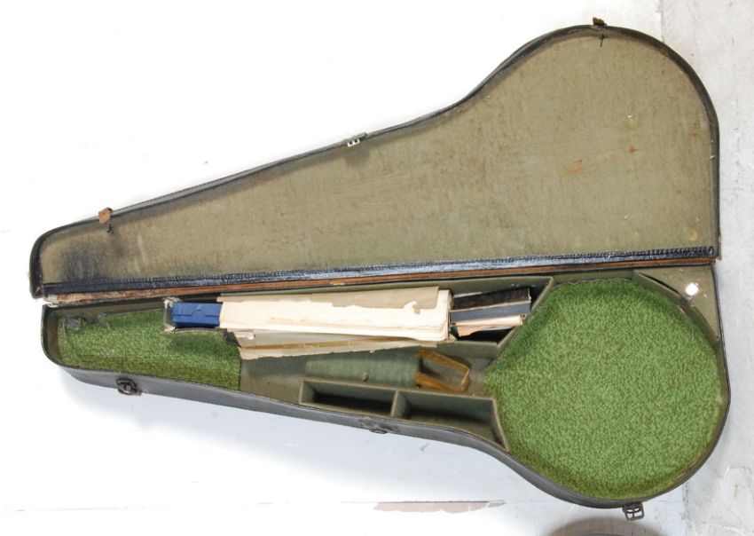 A vintage cased 20th century Windsor Pioneer Banjo being complete in the original carry case. The banjo with plaque verso marked  The Windsor Pioneer