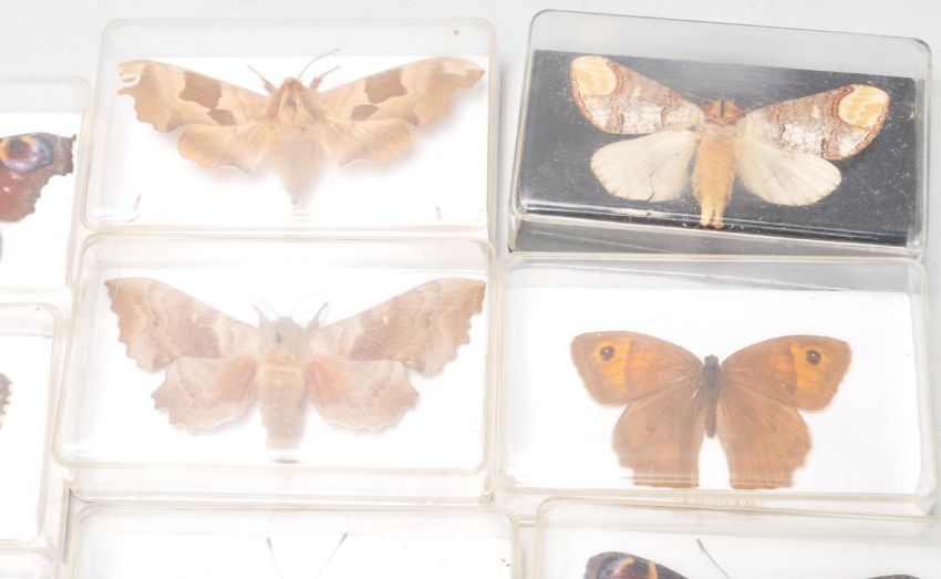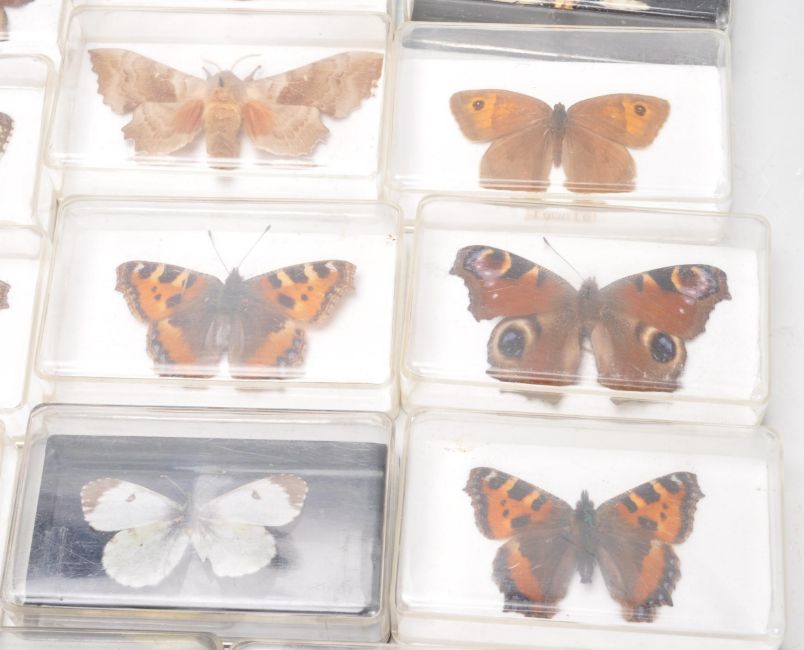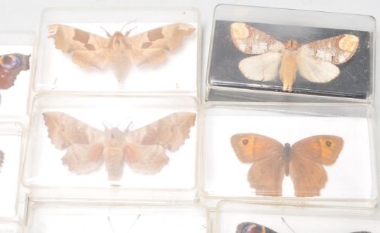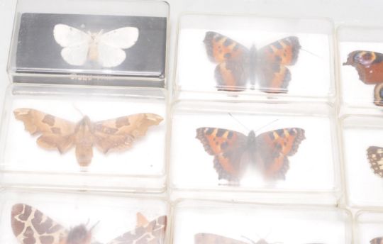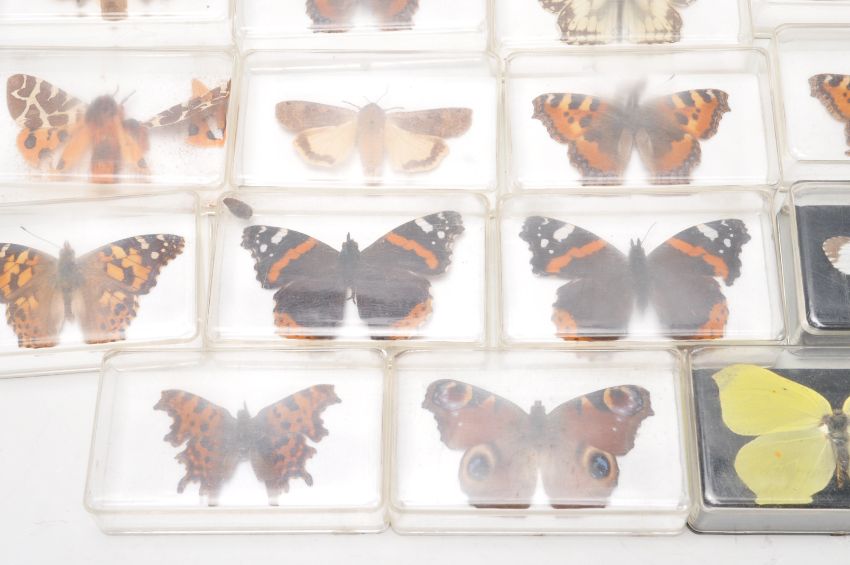 Taxidermy interest - A collection of 25 vintage retro 20th century taxidermy interest exotic butterflies and moth of various sizes, shapes and types to include Comma Butterfly, Meadow Brown Butterfly, Peacock Butterfly, Red Admiral Butterfly, Small Tortoiseshell Butterfly, Red Admiral Butterfly, Poplar Hawk Moth, Lime Hawk Moth, yellow Underwing Moth, and many more