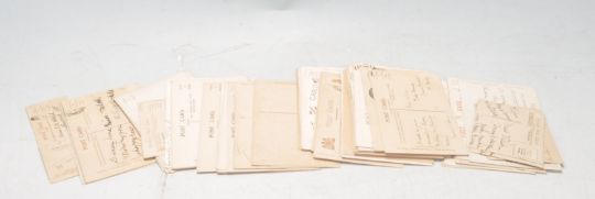 A collection of antique Edwardian postcards and 'midget postcards' featuring theatre actors and actresses such as Mabel Love, Ethel Sydney, Zena Dare, Lewis Waller, Herbert Campbell, Evie Greene, Madge Critchton, Gabrielle Ray, Fred Terry, and Maud Allen.