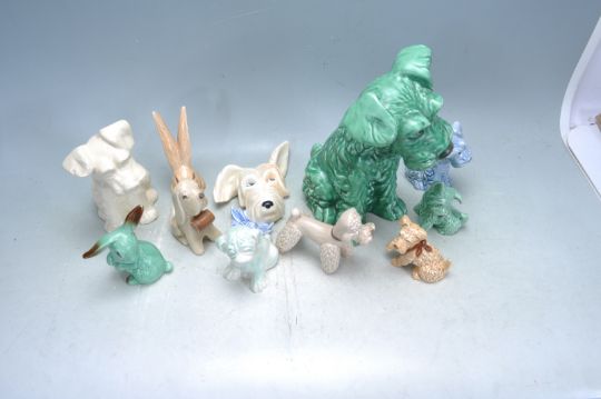 A collection of eleven vintage 20th century Sylvac ceramic figurines comprising of mainly dogs. Largest measures 32 cm high. No visible damage