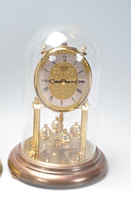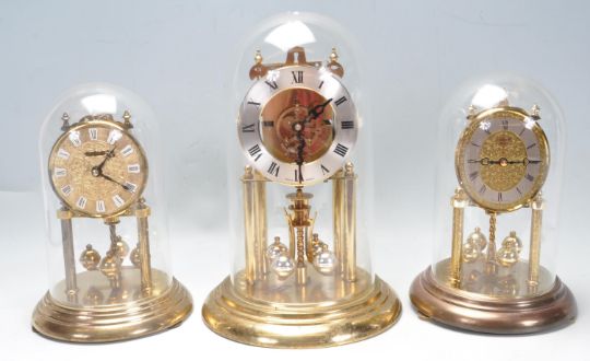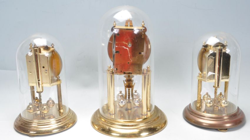 A group of three vintage 20th century anniversary clocks to include a two Hermle clocks together with a German made S Haller anniversary. All the clocks having Roman numerals to the chapter ring. Measures 30cm tall.