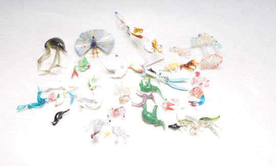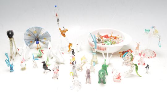 A large collection of vintage retro 20th century studio art glass animal figurines / cabinet figurines to include elephants, peacocks, rabbits dogs, birds fish, swan, horses, dear, etc.