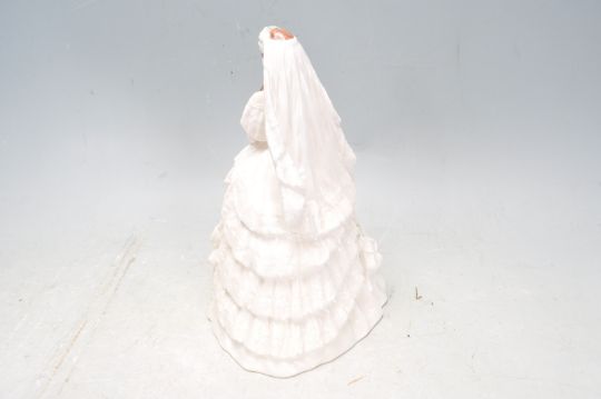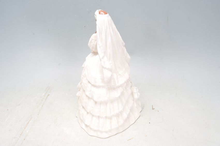 A 20th century Coalport Princess Alexandra ceramic figurine commemorating Princess Alexandra's to Edward the Prince of Wales 1863. Limited edition 4630 of 7500, sculpted by John Bromley. Measures 21cm. All the vulnerable areas are in generally good condition, eg. the hands and flowers. Small chip to the brides vale. Overall good condition.