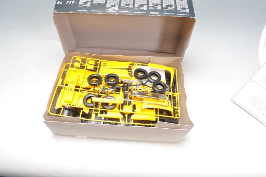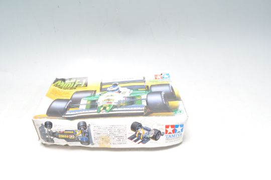 A collection of three scale toy model cars to include Mini F-1 Lotus type 102B 1:28 scale model, Toyota Tom's 84C 1:24 scale model, Mercedes Benz 1853 Heavy Eurotruck 1:24 scale model kit.