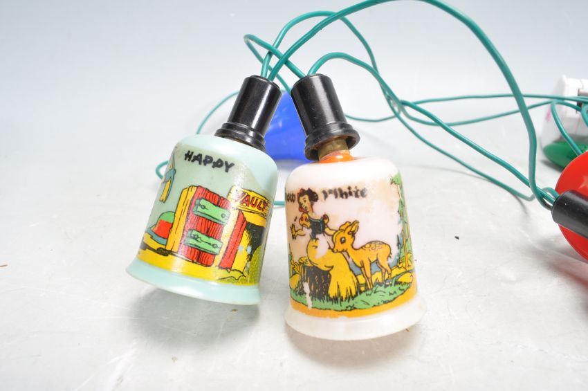 A set of vintage 20th century Walt Disneys Snow White and the Seven Dwarfs by Noma christmas lights. The set has polychrome decoration to the shades of each of the dwarves . Comes in original box.