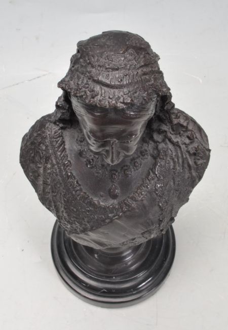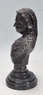 A 20th century antique style bronze / brass Queen Victorian bust. The well made bust depicting the Her Majesty Queen Victoria raise on black marble circular base.