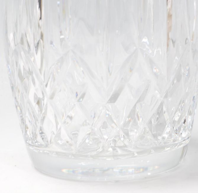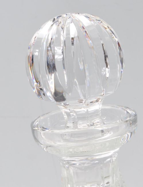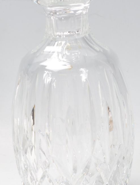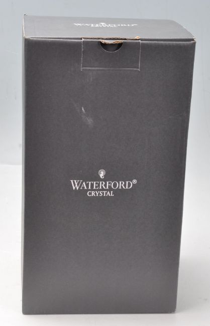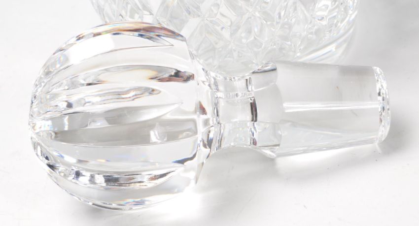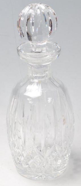A Lismore pattern Waterford crystal spirit decanter having geometric lattice decoration. Comes boxed. Comes with original sticker. Measures 25cm high