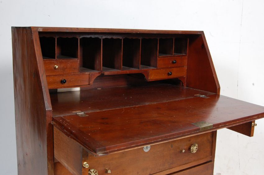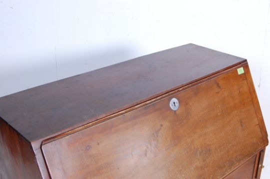 A 19th century Victorian mahogany bureau. The bureau having fall front opening to reveal a compartmented interior above a bank of three drawers raised on bracket feet. Measures: 106cm tall x 92cm wide x 44cm deep.