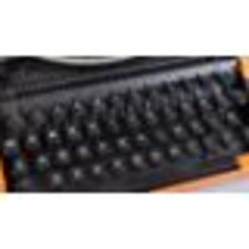 Silver Seiko - A good retro vintage 20th Century Japanese industrial desk top office travel typewriter of slender form. Shaped black plastic keys with with white lettering / numbers and symbols with metal shell finished on a vibrant orange colourway. With the original black plastic cover / carry case. Measures approx 10cm x 30cm x 31cm.