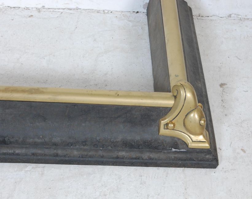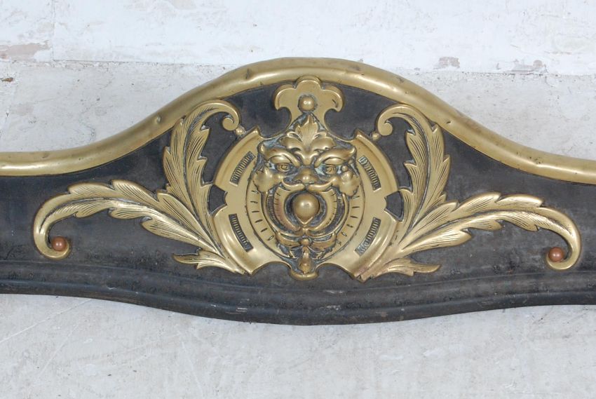 An early 20th century Art Nouveau style brass and iron fire fender. The brass fire fender having foliate decoration with typical. Measures 134 x 30cm.