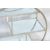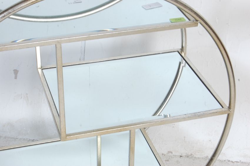 A retro vintage 20th century Art Deco chrome plated tubular three tier serving / tea / cocktail trolley having large circular designed sides with three mirrored glass panel shelves, all raised on trolley castors. 93cm h x 82cm w x 37cm d