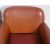 A pair of 20th Century antique style chesterfield fireside club armchairs upholstered in brown faux leather with riveting to the arm rests raised on oak turned bun feet.