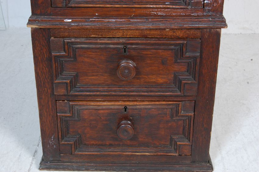 A pair of early 20th century circa 1930’s oak drawers cabinets / filling drawers. The drawers cabinets having twin graduated drawers with turned knob pull handles raised on a plinth base. Measures 64 x 36 x 71cm.