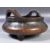 A heavy antique Chinese Ming Dynasty Xuande Mark (1426-1435) bronze archaic achiciastic tripod censer prayer bowl ding of low compressed squat form. The vessel having twin looped handles open well and raised on three small feet. Four character cast Xuande mark in Zhuanshu seal script but likely 19th Century. Weighs 1.180kg Measures approx; 8cm x 15cm.